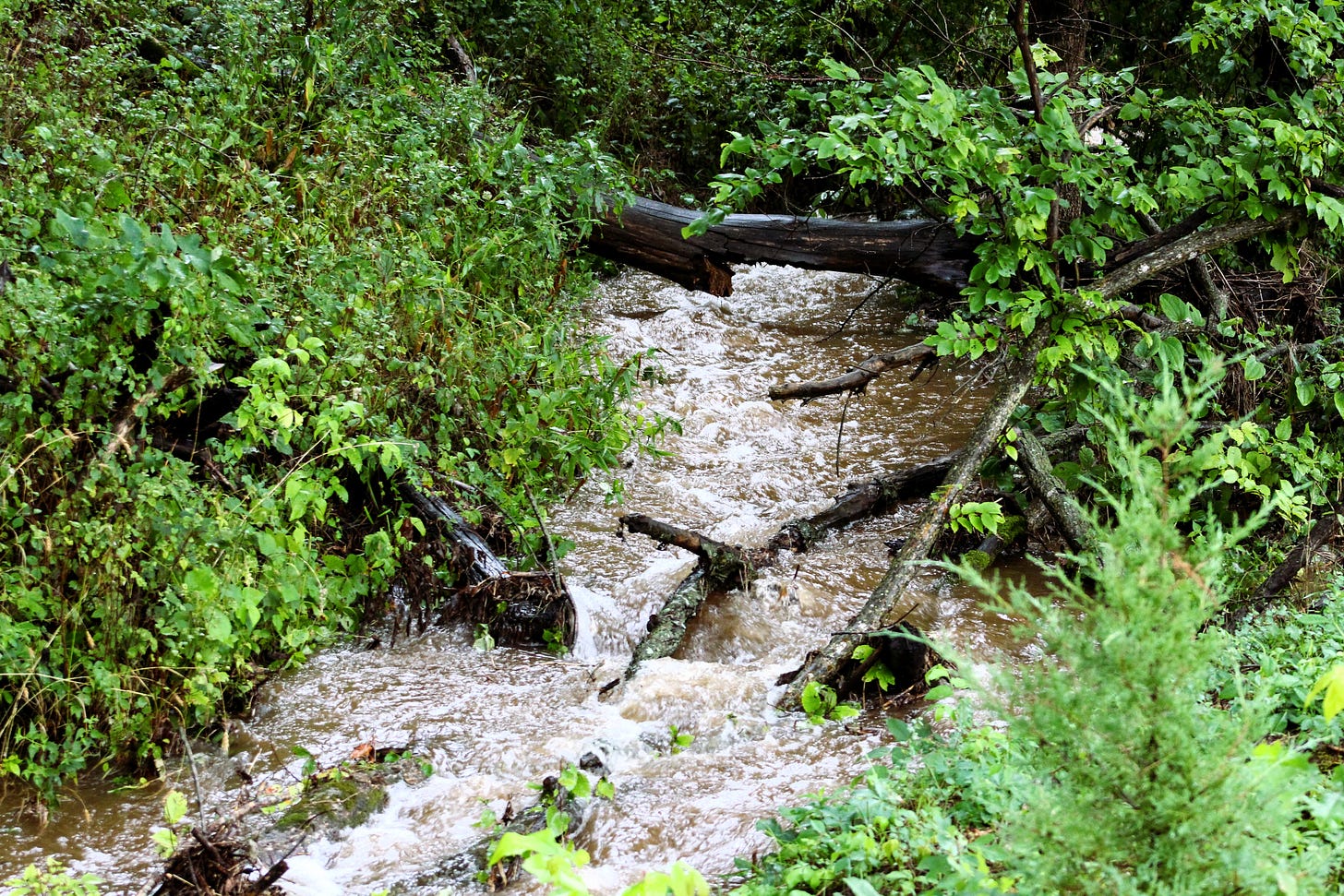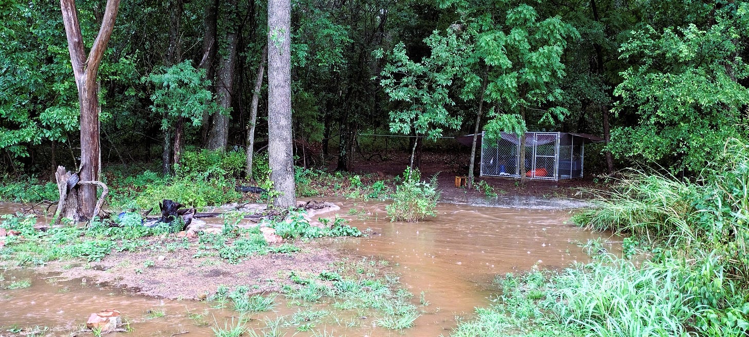 On Wednesday, we had the worst rainstorm we have experienced while living on our property.