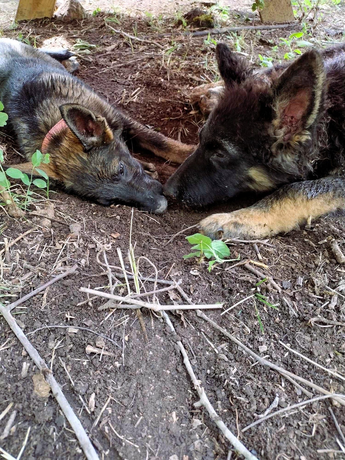 In the middle of all the foundation work, Bonnie-Jean's German Shepherd pup gave us a scare. Tilde was recovering nicely from her surgery -- we thought. Then, Tuesday evening, the surgery site appeared to be swelling badly. Our vet was already closed, so Bonnie-Jean and Erin took her to the Emergency Veterinary Clinic of SW Missouri in Springfield. Since Tilde had thrown up earlier in the morning, we worried something could be very wrong. The vet told Bonnie-Jean that she thought the surgery had failed, and it would need to be redone. It wasn't an emergency though, so they didn't charge her for anything. They just told Bonnie-Jean to make sure Tilde was resting and not playing with rough and tumble Dagger. Bonnie-Jean brought Tilde home and scheduled an appointment with our vet for Thursday. We dropped her off for another surgery Thursday morning, but it turned out that the only issue was that her stitches were too tight. The vet re-did them and didn't charge Bonnie-Jean anything. He said she was healing nicely, and he cleared Tilde to play with Dagger. That was a relief, as keeping the two apart had not been easy.