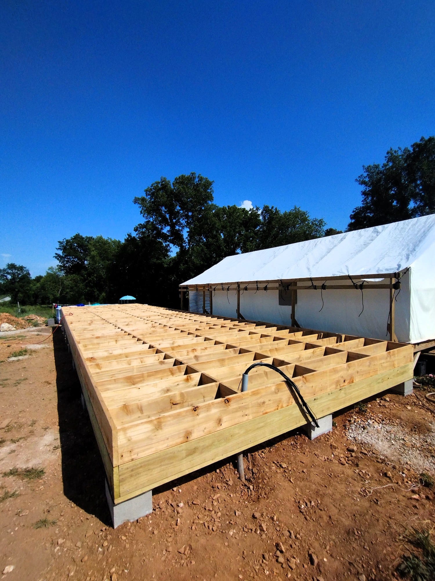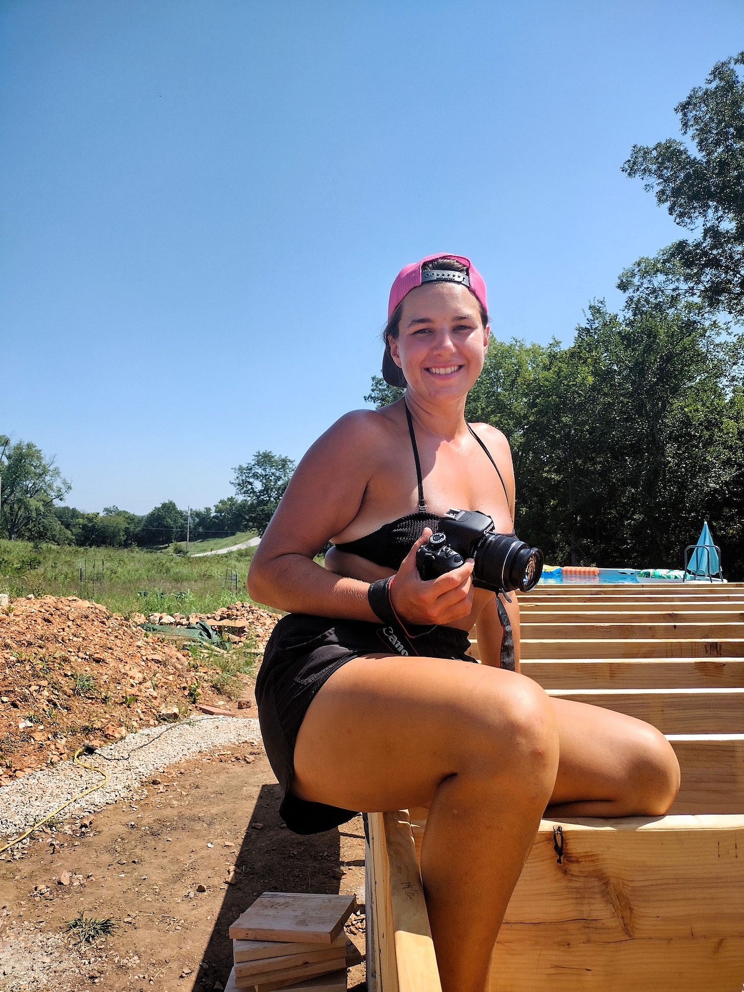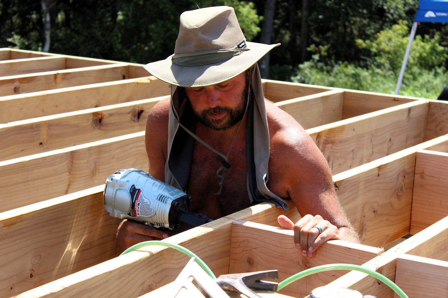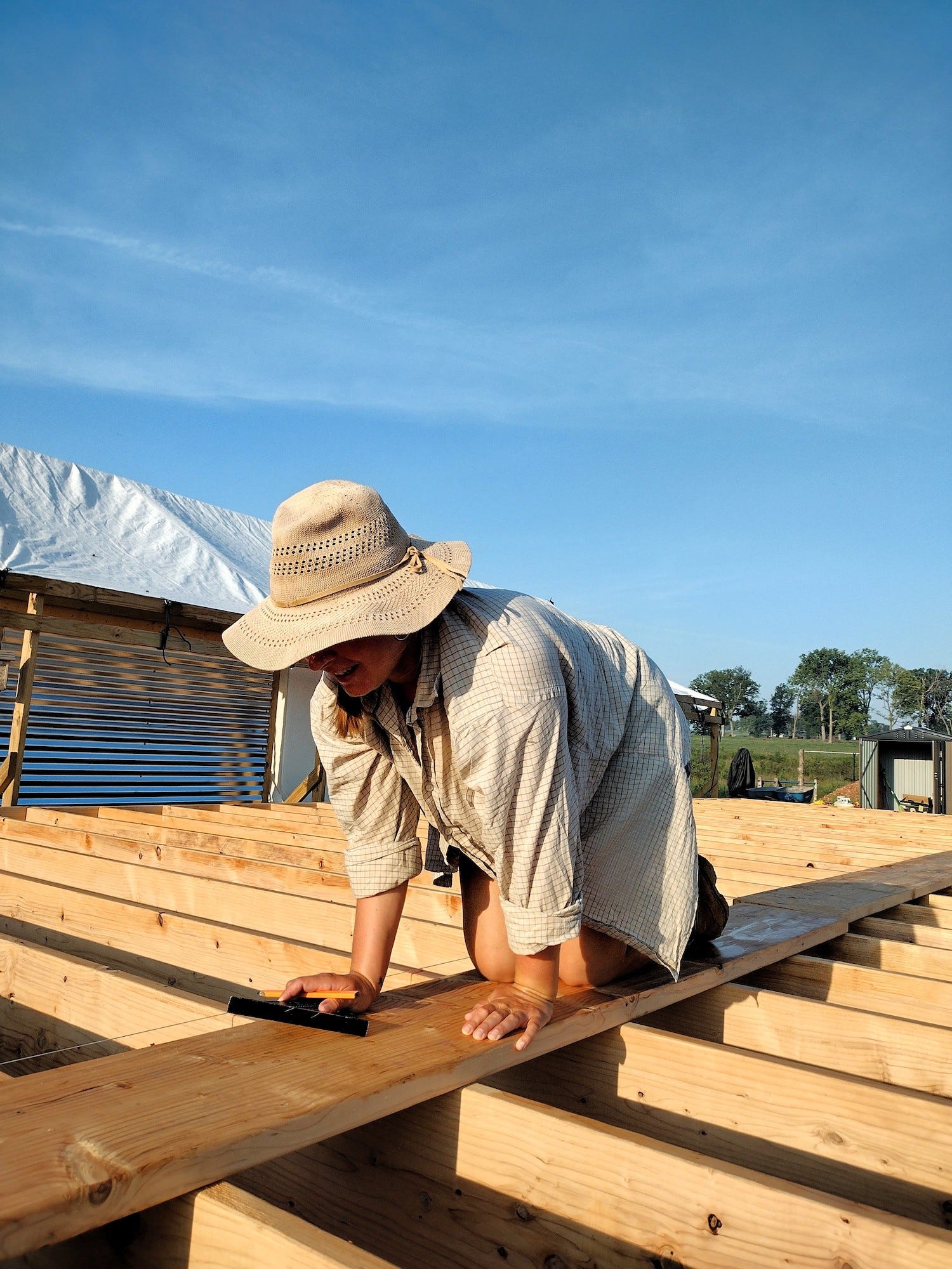 While some weeks have felt so long they seemed like months, this week felt fast -- with each day on repeat. Get up. Sweat. Work on joist blocking. Sweat. Swim. Plan for next phase of build. Sweat. Soak in the pool until it's time to cook dinner.