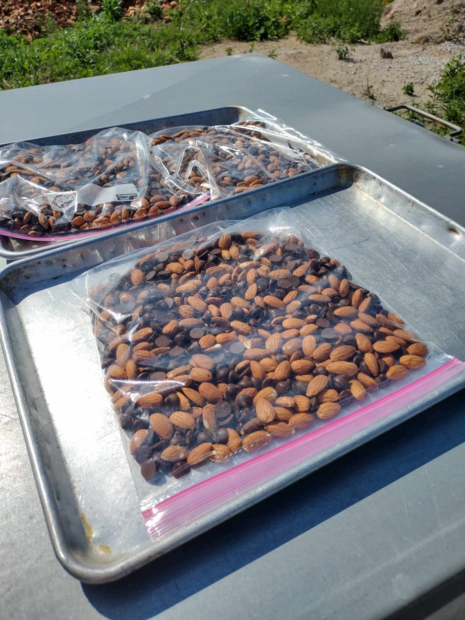 While we all melted under the Missouri sun this week, we had some fun with the extreme temperatures. We tried dashboard cookies -- and it actually did work. We also made some sun-roasted s'more's (I couldn't believe how good they were). Our new favorite sunny-day treat is Sun-Kissed Chocolate Almond Bark. Look out for a post featuring the recipe soon.