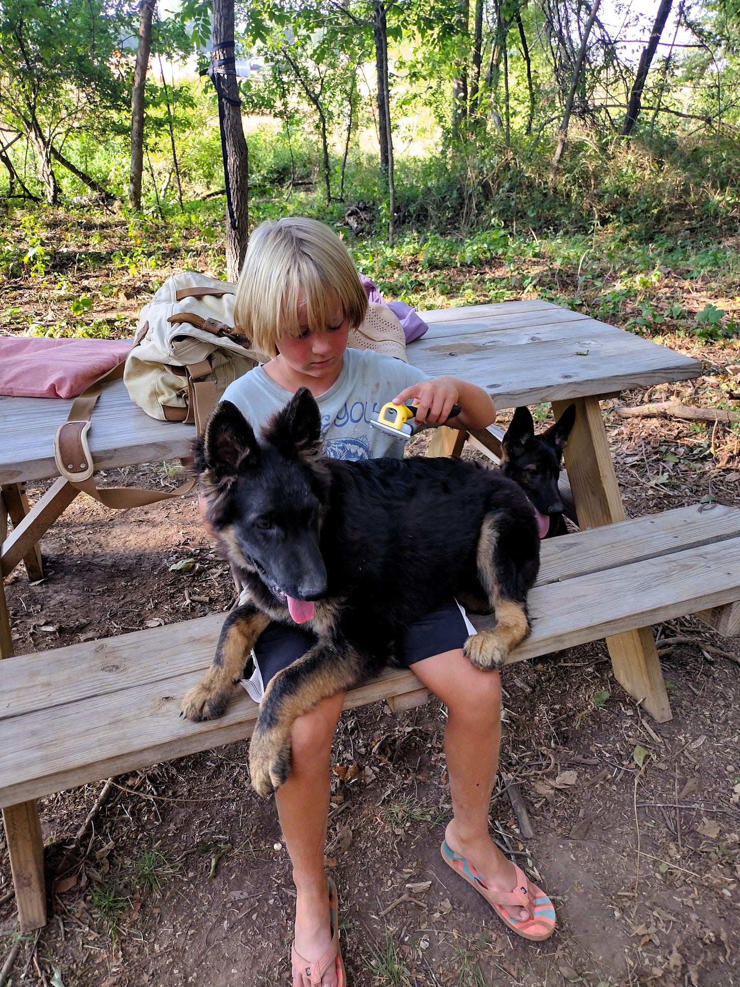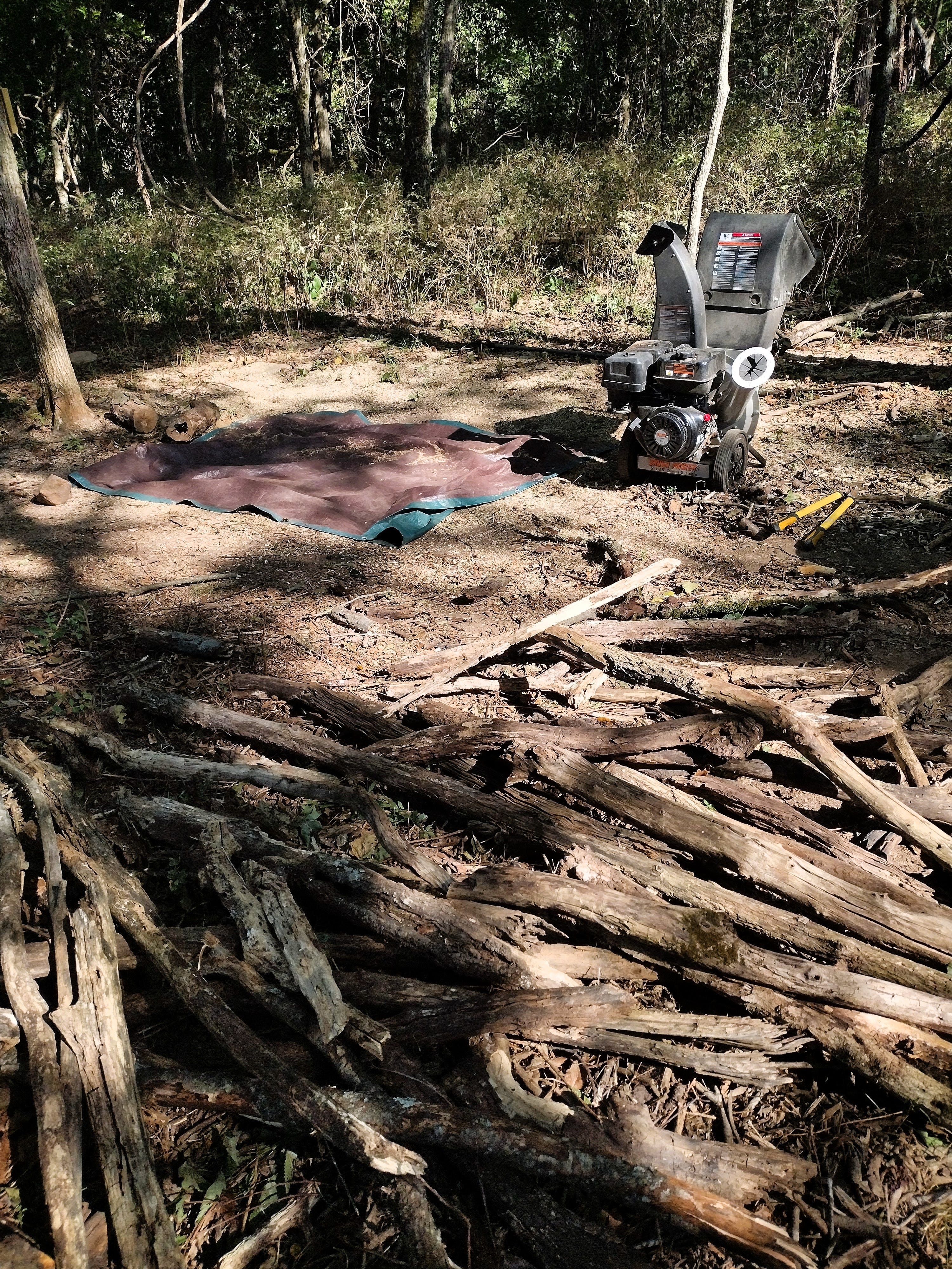 While I drew up our plans, Bonnie-Jean and Grace spent a couple days getting caught up on camp chores. Grace finished reorganizing our tools and supplies. Bonnie-Jean did some deep cleaning. And like always, she took good care of the pups -- even chipping extra wood for the bedding in their kennel.