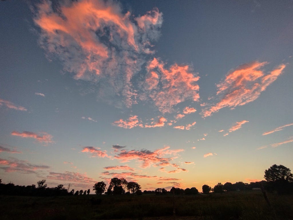 The weather was perfect, with even the hottest part of the day sweetened by a breeze. We saw a flock of some large birds fly over in V-formation at one point. We think they may have been Great Blue Herons. I've lived in Missouri for 20 years, and I've never seen anything like it. They separated into two Vs at one point, then joined back together, doing what seemed like a little air show for us. It felt like a blessing in the midst of a busy day, stopping us in our tracks and inviting us to delight a little in the beauty of creation.