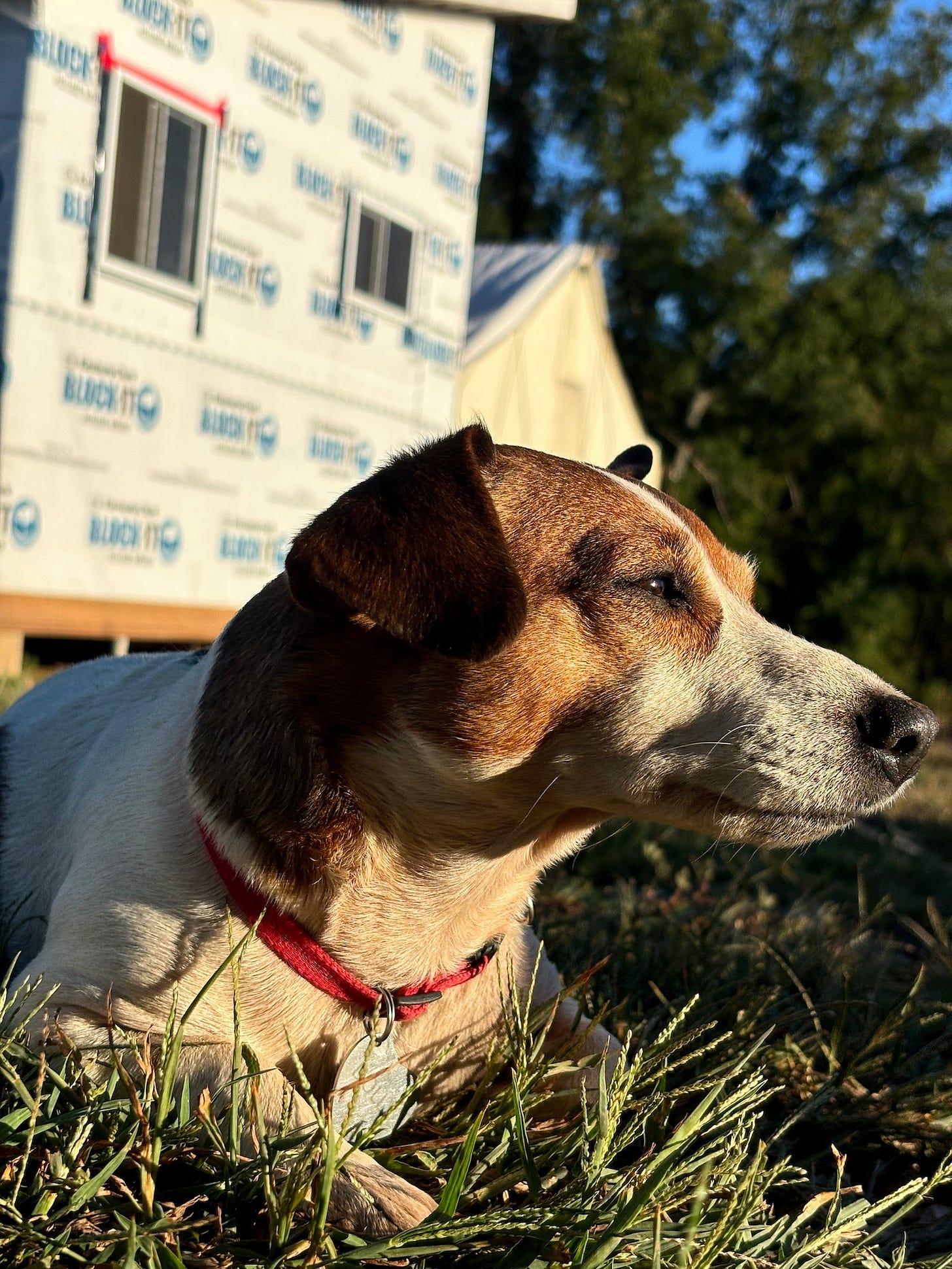 Dolly and Rascal can't figure out what the hurry is. They continue to love life on the homestead, whether they are lounging in the tent, the bunkhouse, or out in the grass somewhere.